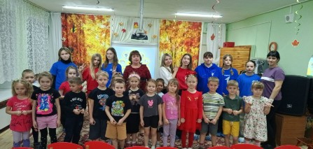 Воспитанники старшей и подготовительной группы вместе с педагогами