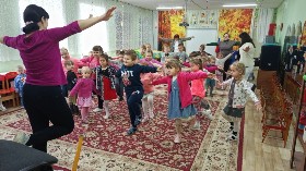 Чтобы оно было здоровым и сильным, воспитанники всех групп дружно вышли в музыкальный зал.