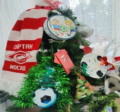 В номинации "Футбольная" новогодняя ёлка наши воспитанники изготовили своими руками украшения